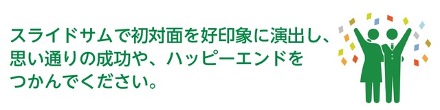 普通の名刺入れは、蓋を開けて、名刺を取り出し、向きを変えて…とモタモタしますが、スライドサムなら取り出し1秒。相手より先に、名刺を差し出すことができます。