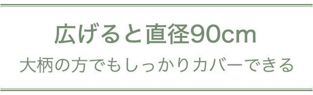 開放時直径90cmも!せっかく折りたたみ傘を持っていても、小さくて肩や荷物が雨に濡れてしまうという心配はありません。