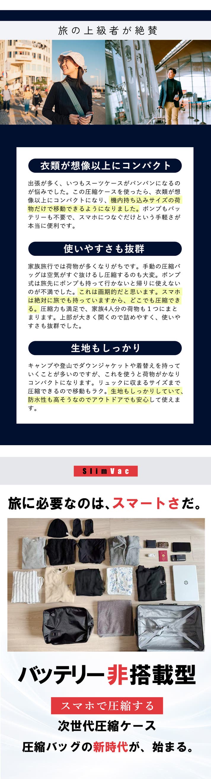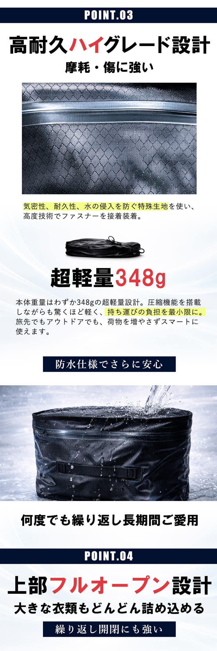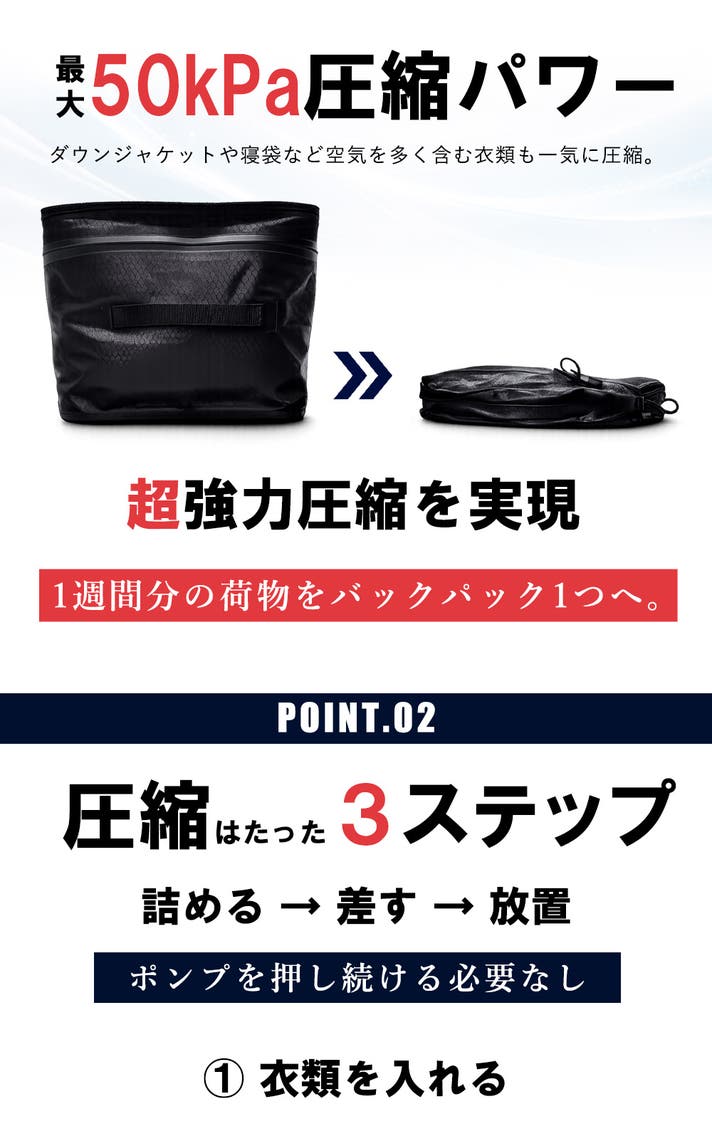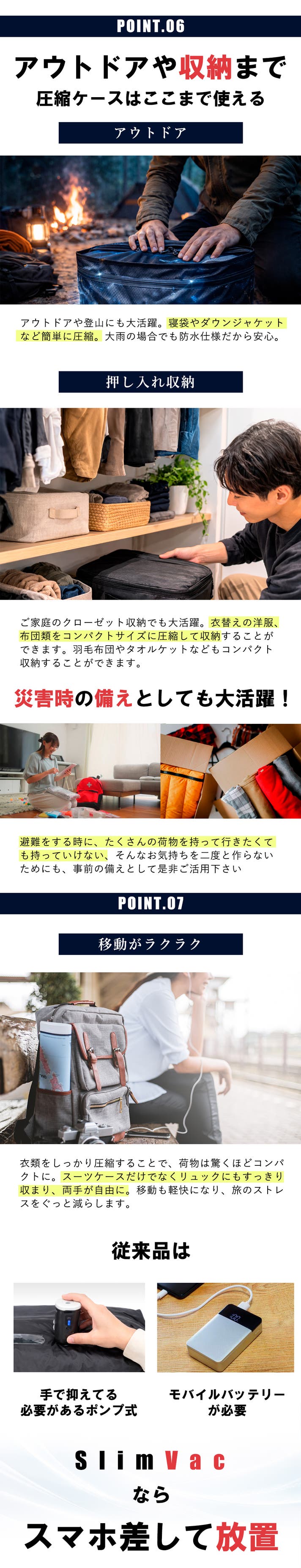 - スマホ接続だけで圧縮完了!ポンプ不要の次世代圧縮ケース!最大90%圧縮で荷物激減