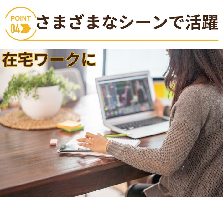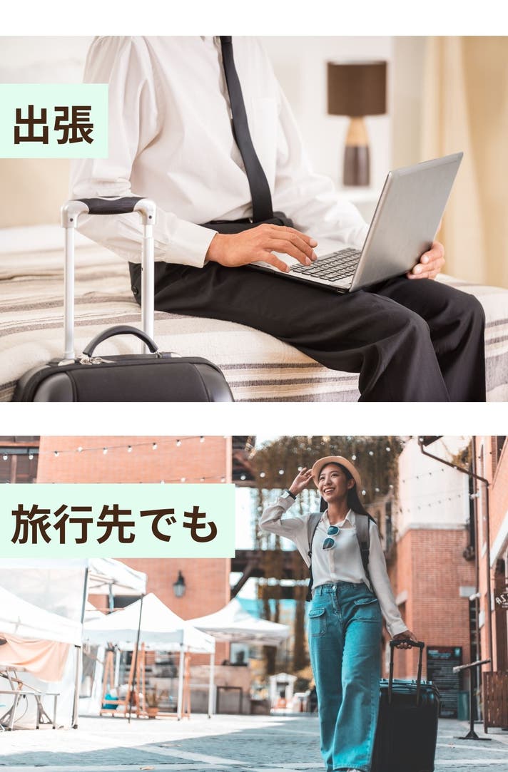 A. 自宅、オフィス、カフェ、コワーキングスペース、旅行先など、どこでも快適に使えます。