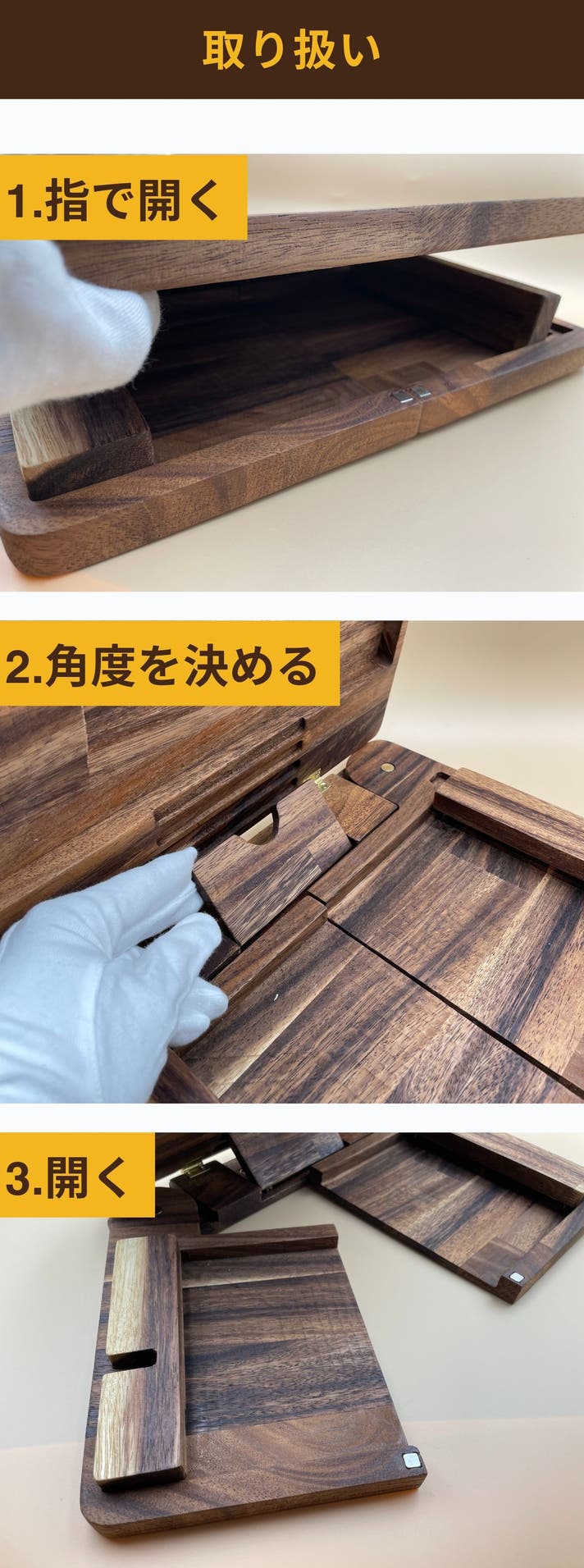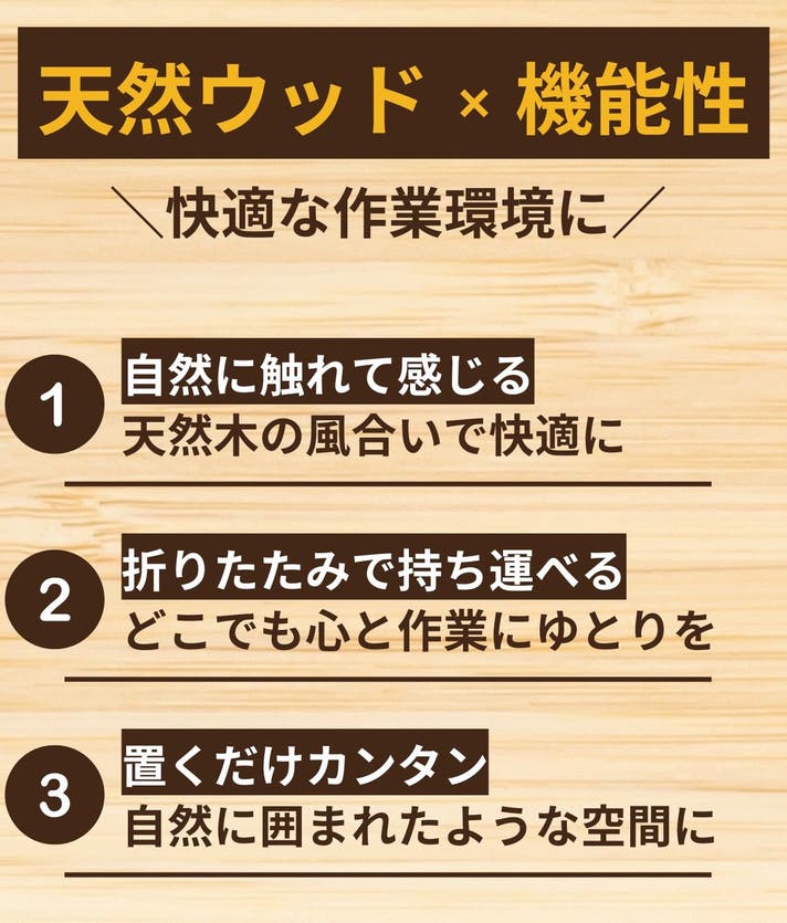 - 【木材に触れる】天然木の風合いと機能性を備えた折りたたみスタンドで快適な作業環境を実現。