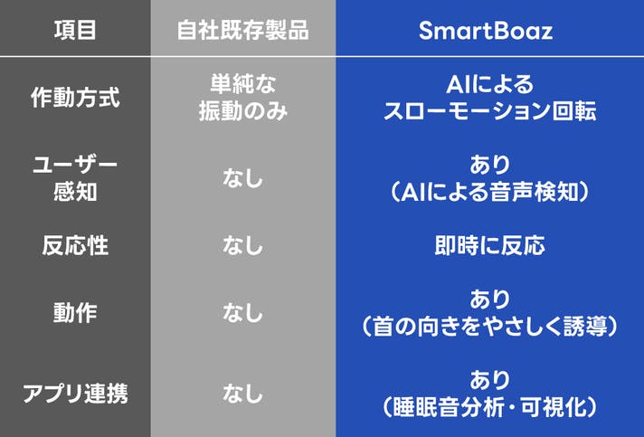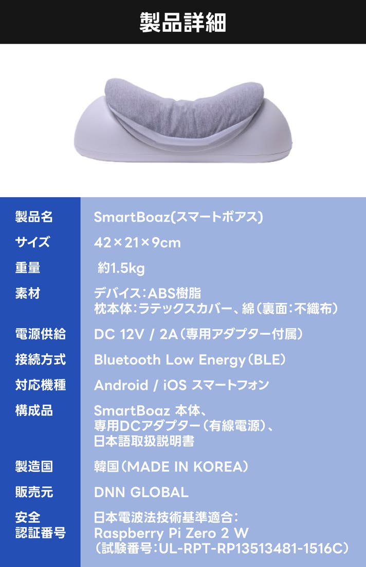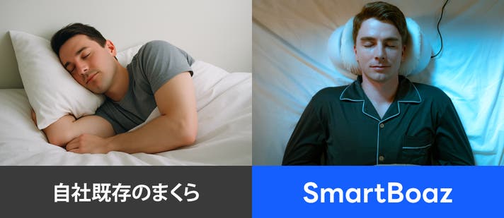 SmartBoazは枕に仕組みを組み込み、無理のない寝姿勢をサポートします。