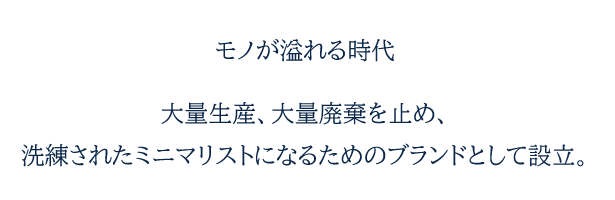 RE:LOREでは上記を深刻な問題と受け止め、お客様から求められる「本当に価値のある商品」を適正な数量で生産、原則セールは行わず、長年愛用でき、お値段以上と感じて頂ける高品質なアイテムのみを厳選、絶対に妥協しないモノ作りに本気で取り組んでいます。