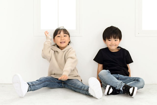 男の子モデル 106cm ジーンズ ライトブルー"110"/Tシャツ 杢グレー"110"