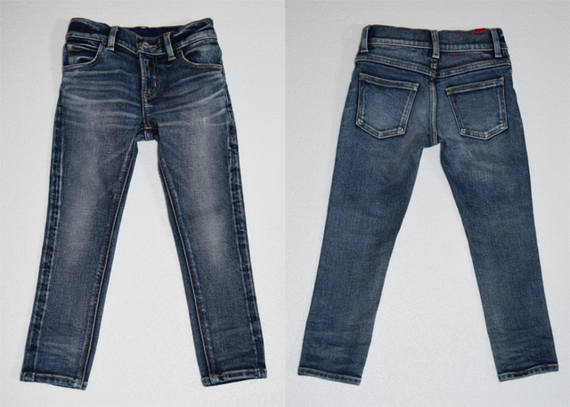 ヴィンテージ感のあるリアルな加工感に徹底的にこだわった非常に完成度の高いキッズ用デニムパンツです。