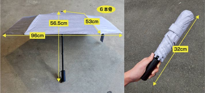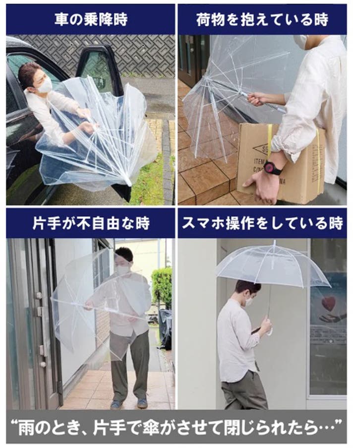 片手で傘の開閉ができる上に水滴もかかりづらいので、