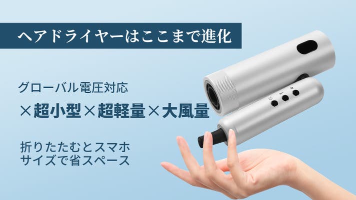「渡航先の電圧が違って髪が乾かない...」そんな悩みを完全解決!進化のコンパクトドライヤーは100V-240V全球対応で、海外出張が増えるビジネスパーソンから、長期バックパッカーまで、快適な旅をサポートする究極の美容家電です。