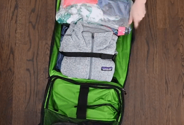かさばる下着類や靴下は、付属の圧縮パックを使えばコンパクトにまとまります。