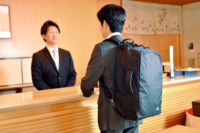 ビジネスリュックは旅先で出歩くのに便利な容量。