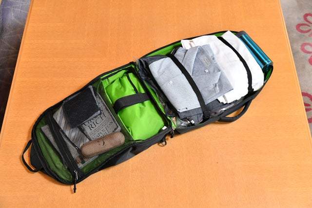 ボトムが2枚、ワイシャツを4枚入れても十分なスペースを確保できるので2~3泊の旅行にも十分対応できます。