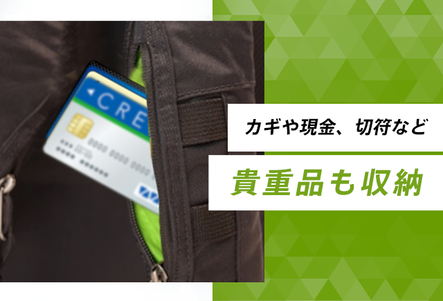 さらにショルダーベルトにはシークレットポケットがあるので、カギや現金、切符などの貴重品も収納できます。