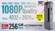 本体は小型・軽量でありながら必要最低限の1080P解像度、SDカードは256GBまで対応とすることで、こまめにデータの削除を行う必要もありません。