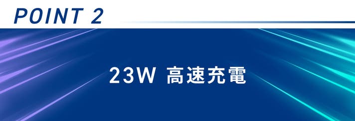 - 23Wの高速充電。うっかり充電を忘れても、実用レベルまで高速チャージ