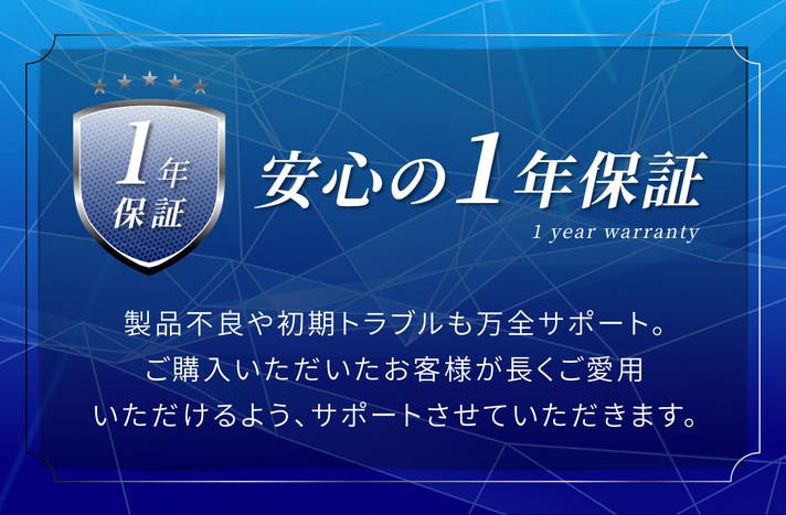A:はい。お届けから1年間の実行者保証がございます。初期不良や通常使用による不具合には無償で対応いたします。