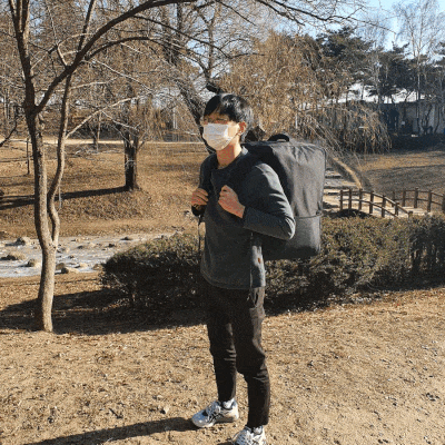 マンモスバッグを背負ってキックボードに乗っても問題ありません!