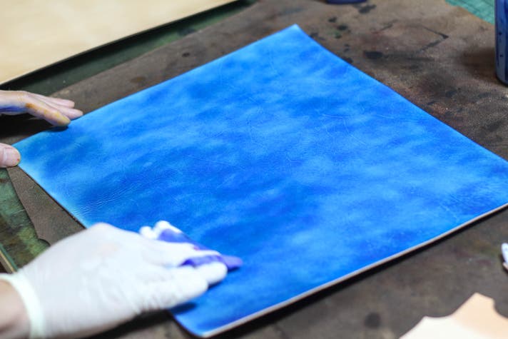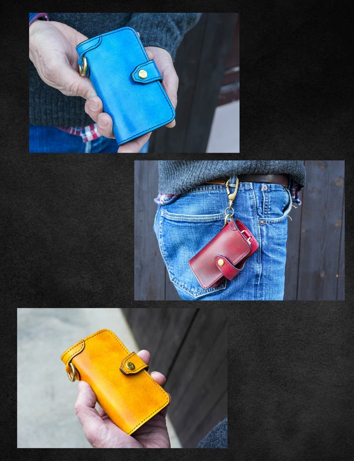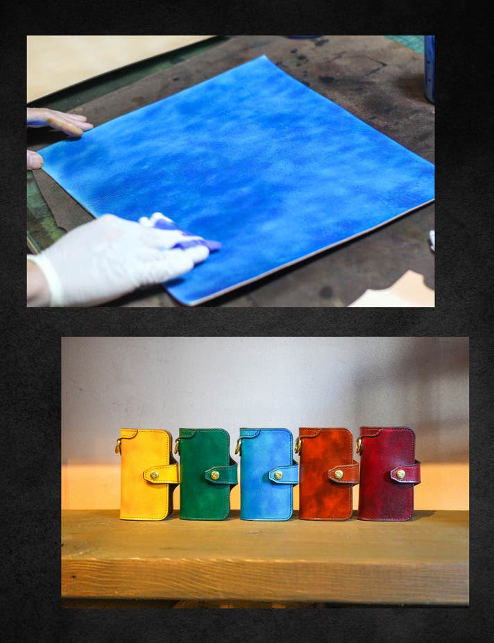 手染め×天然本革=一点モノの仕上がり