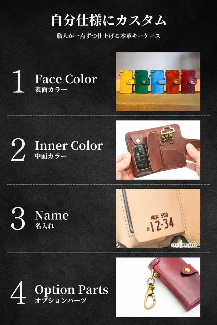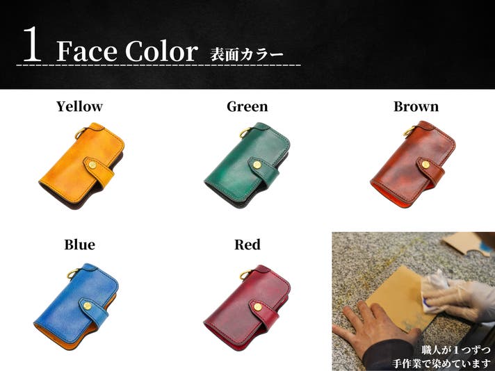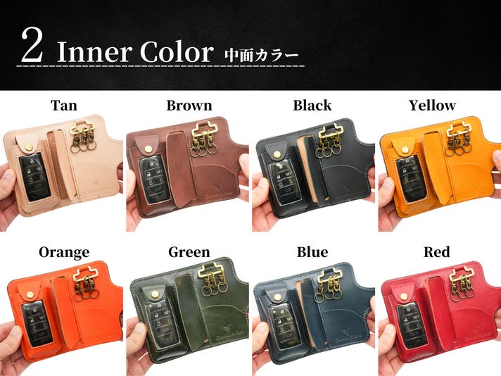 - 【カスタム】手染めカラー・インナーカラー・名入れ・金具を選んで自分好みのキーケースが作れる!