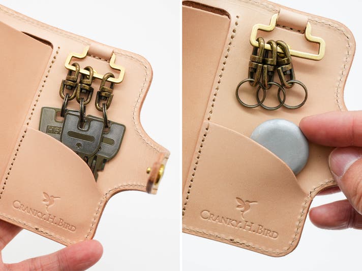 鍵を固定したり、紛失防止タグを入れたり、用途は自由です。