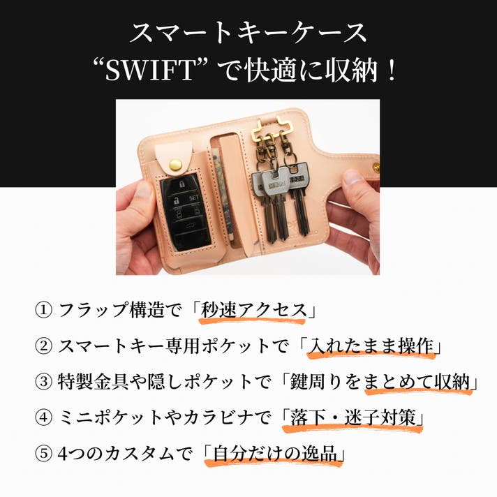 スマートキーケース"SWIFT"の魅力が少しでも伝わっていることを願っております。