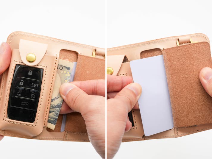 スマートキー・鍵・カード・お札・紛失防止タグまでまとめて持てます。