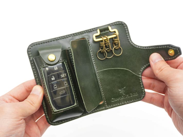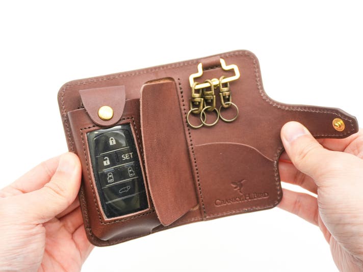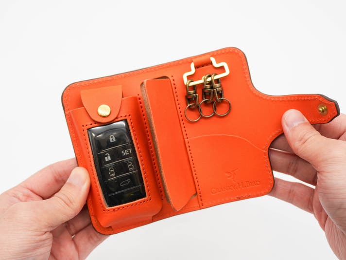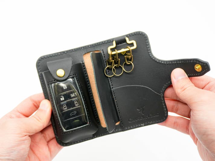 国産車のスマートキーを中心に、幅広く収納できる設計です。