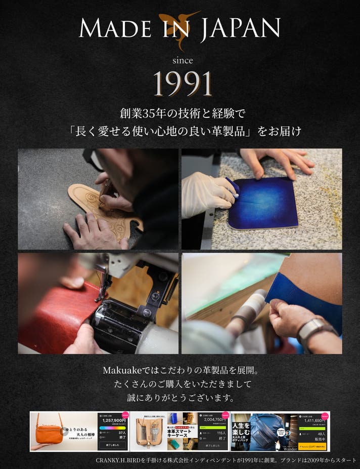大阪の小さな革工房ですが、Makuakeを通して通して全国の皆さんへお届けできることを心から願っております。