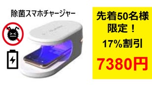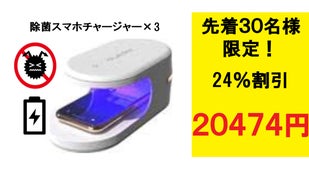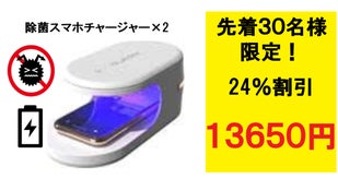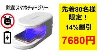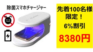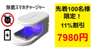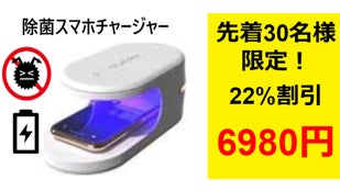 除菌スマホチャージャーにスマホを置いて、除菌スイッチオン!