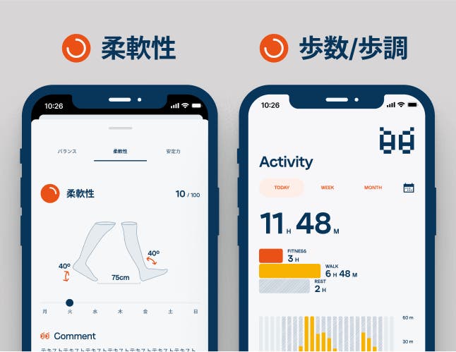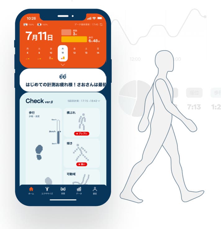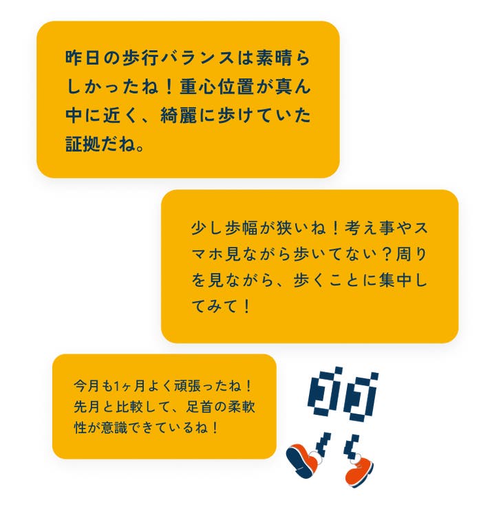 歩き方や姿勢のパターンを解析し、日々の変化に合わせてコメントを届ける