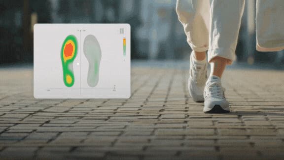 足裏の圧力分布からアーチの低下や内側への倒れ込み傾向を見える化します。歩幅や歩調のデータも取得しているので、最適な提案を行い、負担が少ない歩行へ近づくことができます。