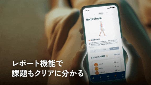 姿勢データや運動データを可視化し、日常の立ち方・座り方・歩き方の“クセ”に気づけます。あなたのクセに合わせてエクササイズを提案するので、美しい姿勢作りを日常から行うことができます。