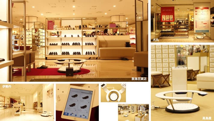 千葉大学との共同研究で開発したマッチングアルゴリズムを活用し、2015年から全国の百貨店や量販店に「自分の足に合う靴を探せる仕組み」を提供。