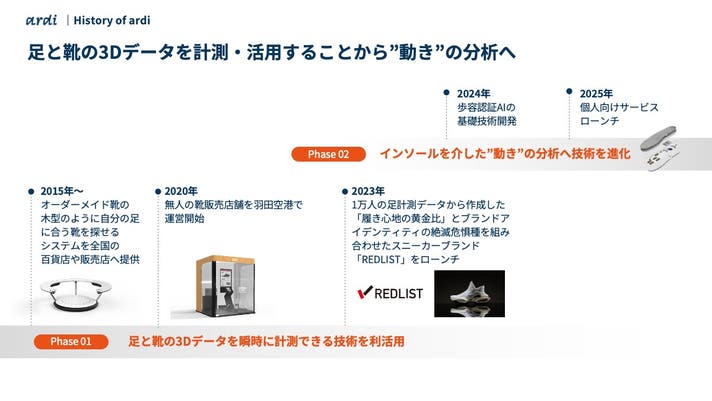 さらに、1万人の足のデータを基にしたスニーカーブランドも展開し、長年にわたり足と靴の研究と実用化に取り組んでいます。