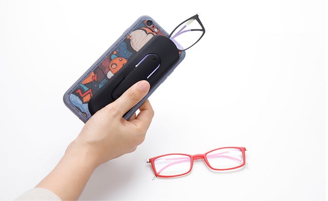 - スマホ裏にケースセット可能!7mmの薄いケースにメガネを収納できます