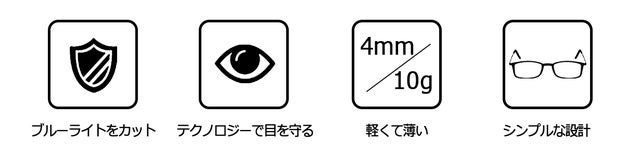 - 長時間のパソコンやテレビからも、このメガネがあなたの目をサポートします