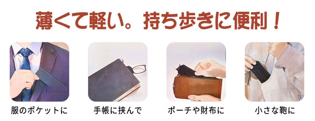 服のポケットに入れて、財布や手帳のように持ち歩けます。