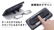 スマホを、デスクの上で見やすい角度に立たせる、このケース。新開発のデザインです。