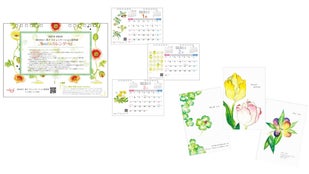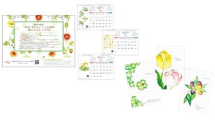 完成した卓上カレンダー1冊、奥田氏オリジナルのポストカード3枚