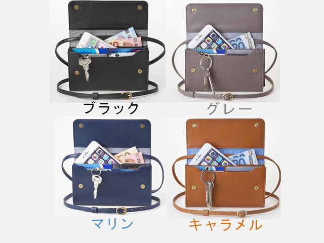 肩から掛けることが出来るクロスボディタイプのお財布で、ファッションのアクセントになります。男女関係なくお使いいただけます。
