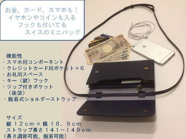 クレジットカード 12枚、スマホやパスポートも、お金も入る大容量です