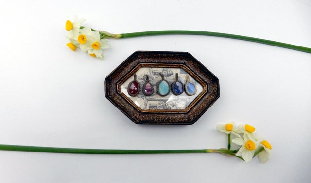 捨てられる運命にある美しい磁器の破片から作られたネックレス、ピンブローチ、ブローチを販売します。