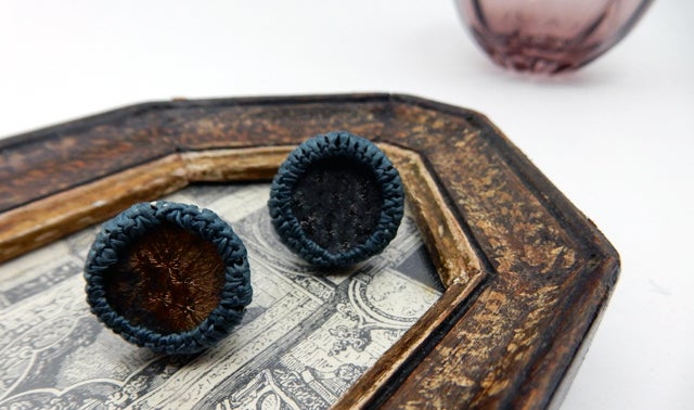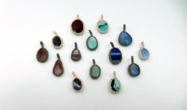 材料:磁器、コード、毛糸、刺繍糸、金具
