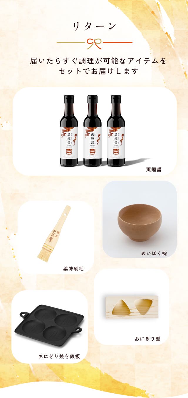 【超早割20%OFF】薫煙醤2本と刷毛・おにぎり焼き鉄板のセット
