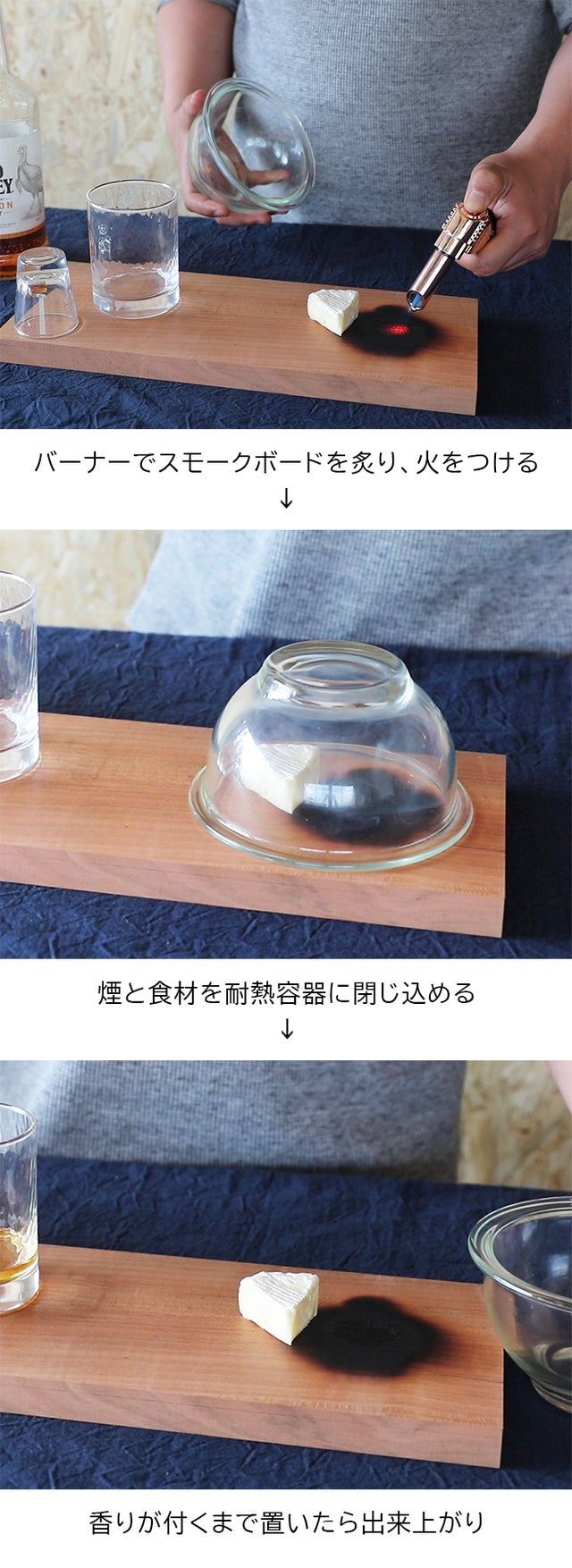 スモークボードとは、板を炙った煙でお酒やおつまみに香りを付けるプロダクトです。