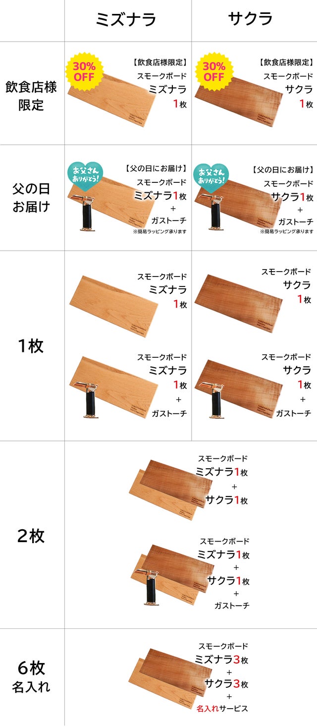 スモークボード【ミズナラ】3枚+スモークボード【サクラ】3枚【名入れ無料】