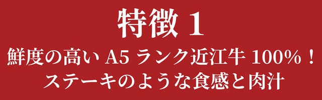- 三大和牛・近江牛100%。中でもA5ランクのみを超粗挽きで肉々しくジューシーに仕上げました