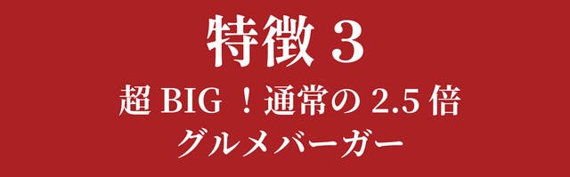 - 某ファストフード店の3倍。300gの超BIGグルメバーガーが誕生