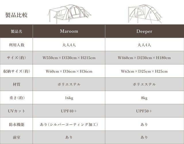 そんな中で誕生したのが、ファミリー&グループ向けテント「Maroom」と「Deeper」です。