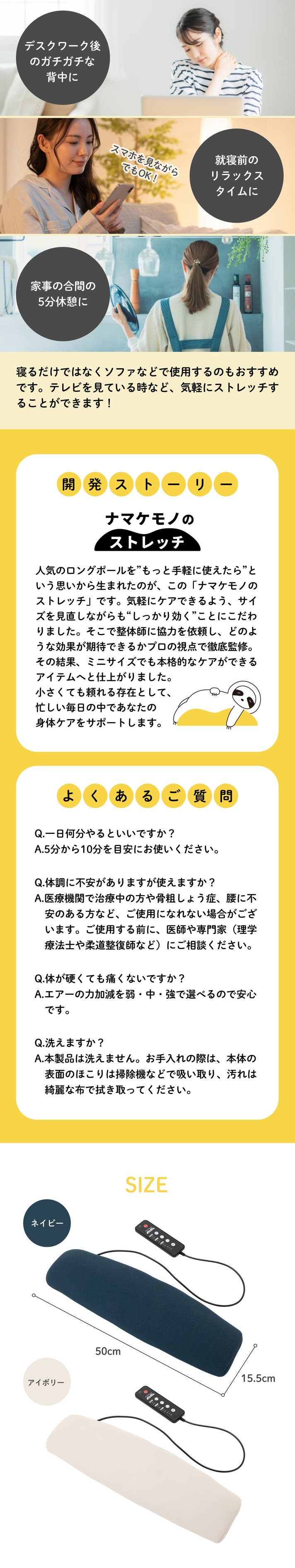 - 寝るだけカンタン!背骨を押す動きをミニポールで再現。手軽にケアができます。