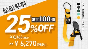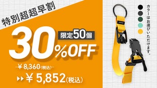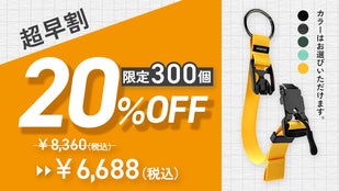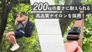 最大200㎏に耐えられる高強度のナイロンウェビングと、一瞬で締結できるマグネットバックルを使用しており、しっかりとした固定が可能です。