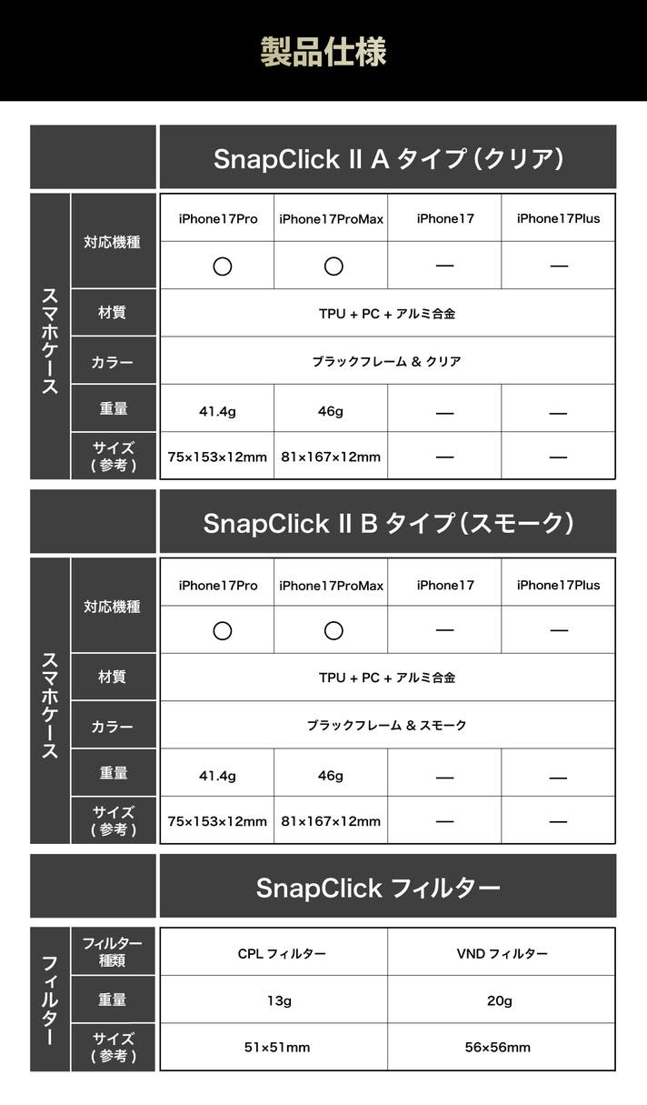 皆さまから寄せられた「もっといろいろな撮影を試したい」「広角・望遠でも使いたい」という声が、今回のSnapClickⅡを動かす大きな力になりました。